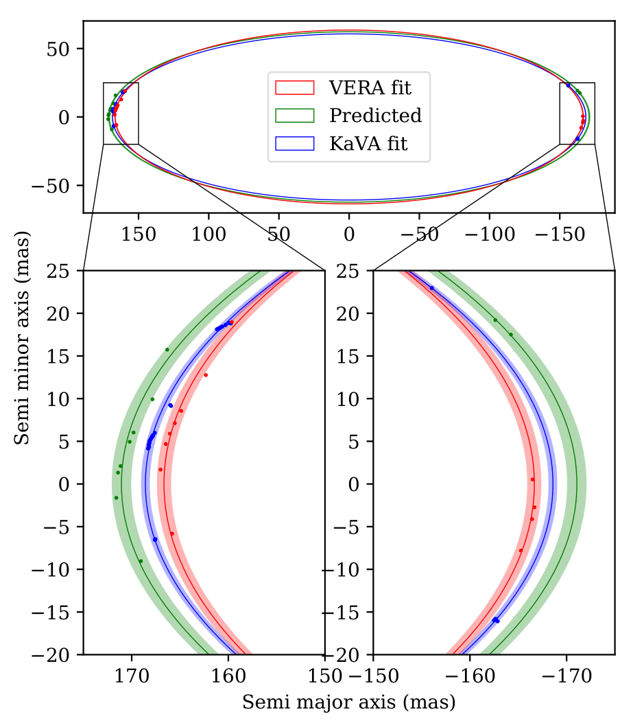 \pm 0.07~\mathrm{mas}\) in the KaVA data, which is less than an