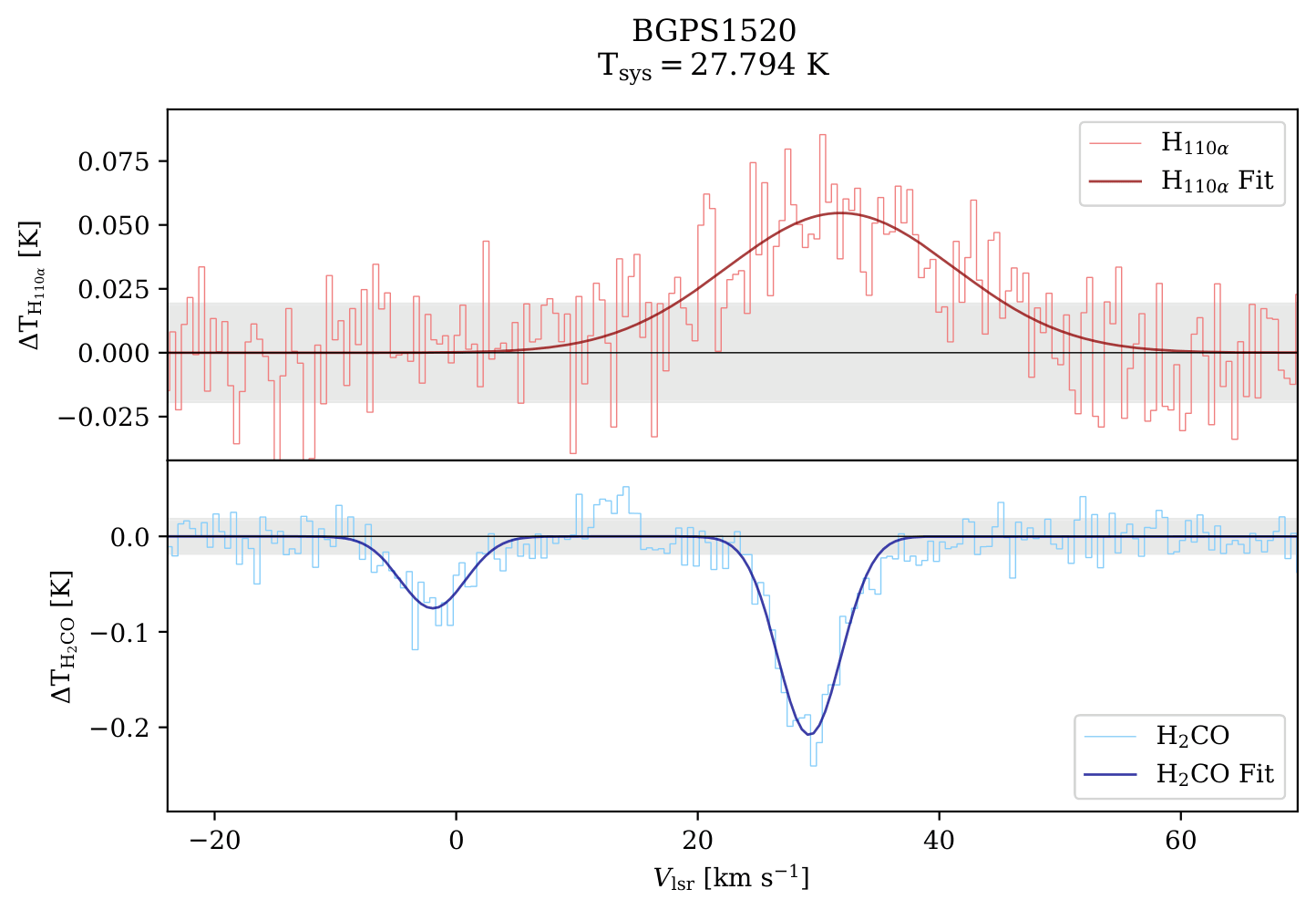 H2CO and H110α spectrum of a BGPS source taken using the Nanshan 25m radio telescope